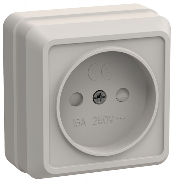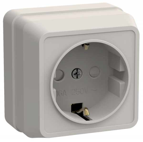 Розетка IEK ОКТАВА 1-мест. в сборе с корпусом с З/К откр. уст-ки16А 250В IP20 кремовый