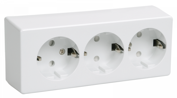 Розетка IEK БРИКС 3-мест. в сборе с корпусом с З/К откр. уст-ки16А 250В со шторками IP20 белый