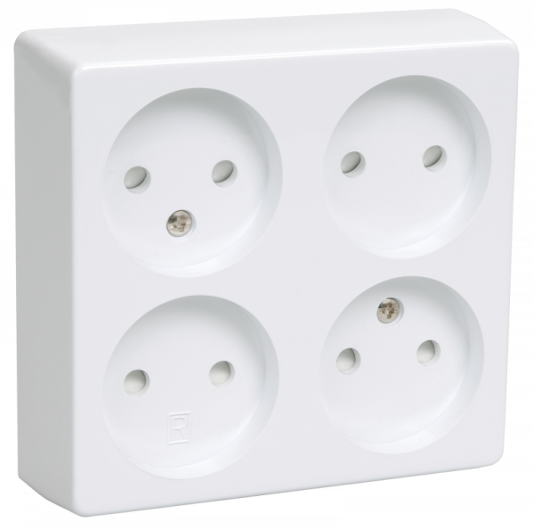 Розетка IEK БРИКС 4-мест. в сборе с корпусом без З/К откр. уст-ки10А 250В со шторками IP20 белый