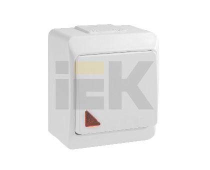 Выключатель 1-клавиш. с подсветкой LED 220В о/у белый глянц. IP44 IEK ГЕРМЕС