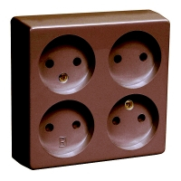 Розетка IEK БРИКС 4-мест. в сборе с корпусом без З/К откр. уст-ки10А 250В со шторками IP20 коричн.