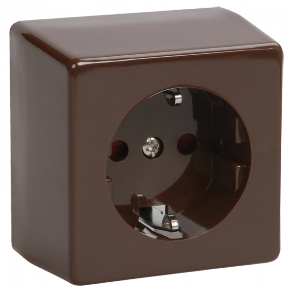 Розетка IEK БРИКС 1-мест. в сборе с корпусом с З/К откр. уст-ки16А 250В со шторками IP20 коричн.