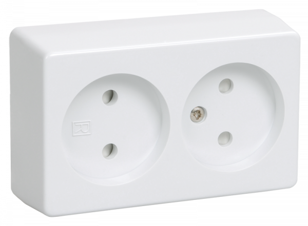 Розетка IEK БРИКС 2-мест. в сборе с корпусом без З/К откр. уст-ки10А 250В со шторками IP20 белый
