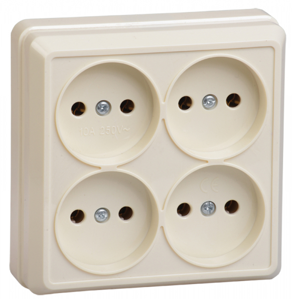 Розетка IEK ОКТАВА 4-мест. в сборе с корпусом без З/К откр. уст-ки10А 250В IP20 кремовый