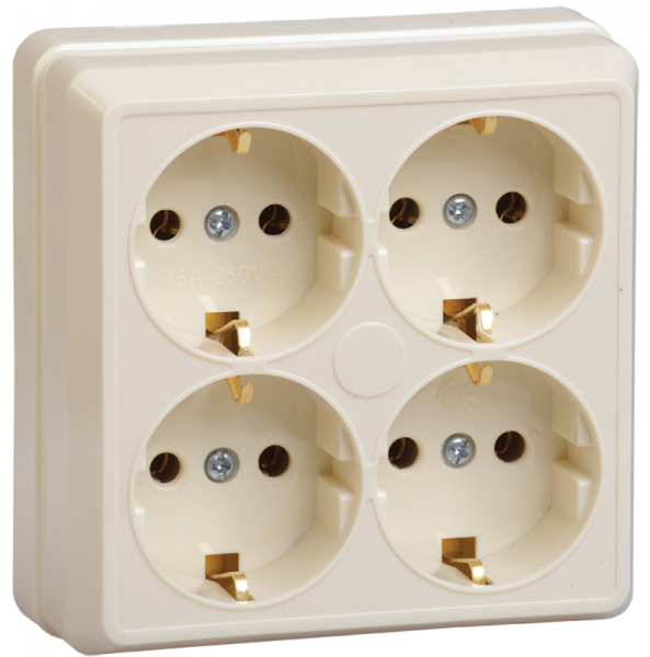 Розетка IEK ОКТАВА 4-мест. в сборе с корпусом с З/К откр. уст-ки16А 250В IP20 кремовый