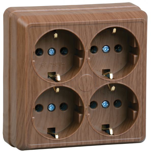 Розетка IEK ОКТАВА 4-мест. в сборе с корпусом с З/К откр. уст-ки16А 250В IP20 дерево