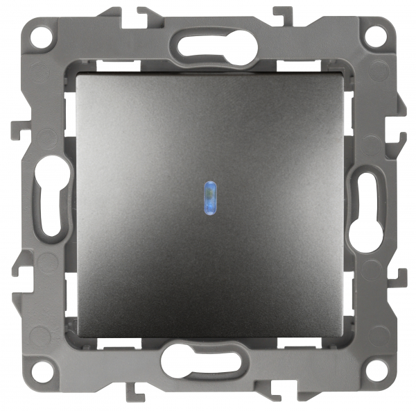 Выкл 1-клавиш. с подсветкой LED мех-м с накладкой 10А 250В с/у графит матовый декор d 1/1 IP20 ЭРА 12