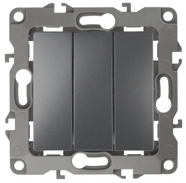 Выкл 3-клавиш. мех-м с накладкой 10А 250В с/у антрацит матовый декор d 1/1 IP20 ЭРА 12
