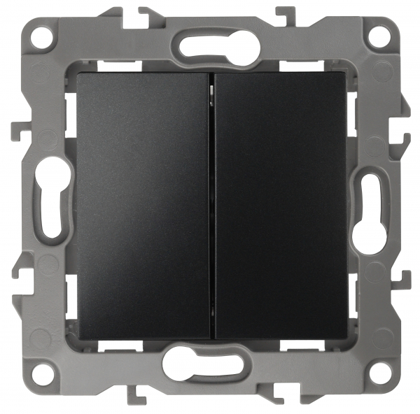 Выкл 2-клавиш. мех-м с накладкой 10А 250В с/у антрацит матовый декор d 1/1 IP20 ЭРА 12