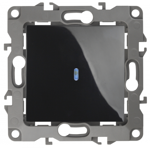 Выкл 1-клавиш. с подсветкой LED мех-м с накладкой 10А 250В с/у графит матовый декор d 1/1 IP20 ЭРА 12