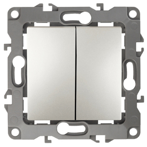 Выкл 2-клавиш. мех-м с накладкой 10А 250В с/у жемчужный матовый декор d 1/1 IP20 ЭРА 12