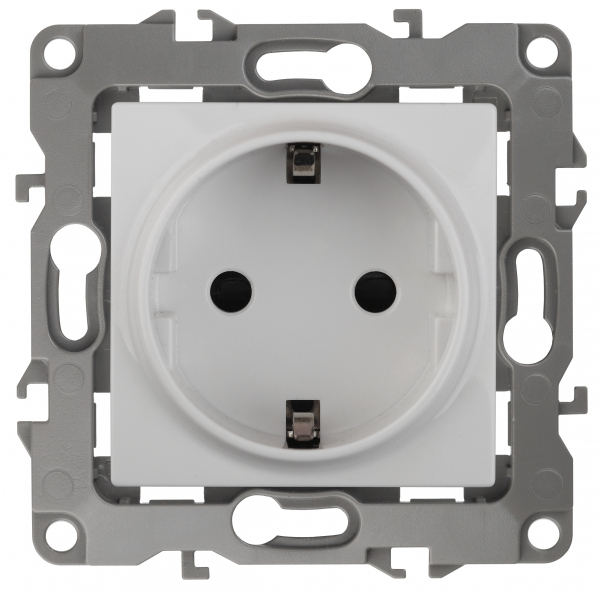Розетка ЭРА 12 1-мест. 0мод. механизм с накладкой с З/К скр. уст-ки10А 220-250В со шторками IP20 алюм. декор d 1/1