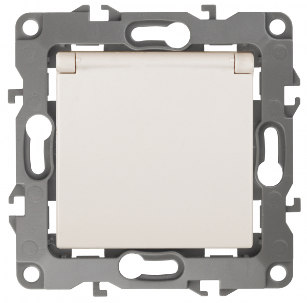 Розетка ЭРА ЭРА 12 1-мест. 0мод. механизм с накладкой с З/К скр. уст-ки10А 220-250В со шторками с крышкой IP20 крем.-белый декор d 1/1