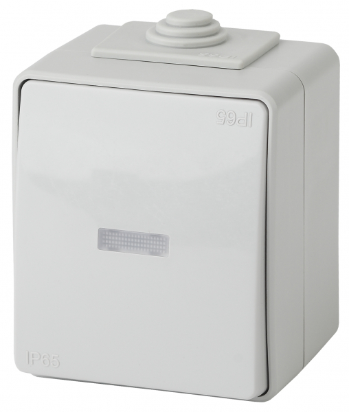 Переключатель 1-клавиш. с подсветкой LED в сборе 10А 250В о/у серый глянц. декор d 1/1 IP65 ЭРА Эксперт