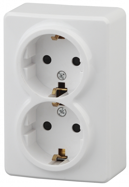 Розетка 2-ая с/з с/ш 2X2P+E Schuko, 16А-250В, IP20 12-2008-01 белый ЭРА 12 /1