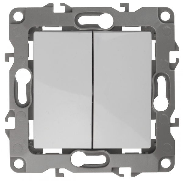 Выкл 2-клавиш. мех-м с накладкой 10А 220-250В с/у белый глянц. декор d 1/1 IP20 ЭРА 12