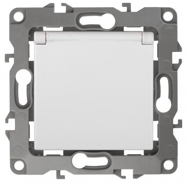 Розетка ЭРА Эра Эксперт 1-мест. 0мод. механизм с накладкой с З/К откр. уст-ки10А 220-250В со шторками IP54 белый декор d 1/1