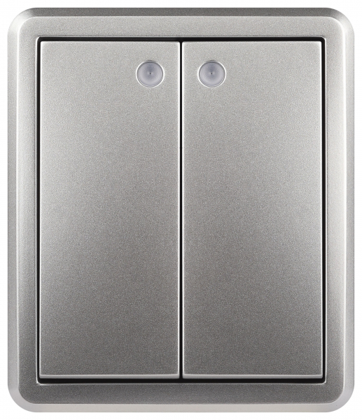 Выключатель ЭРА Эксперт 11-1205-03 двойной с подсветкой IP20 10АХ-250В ОУ алюминий