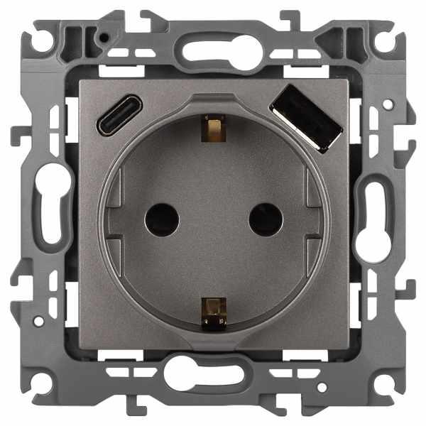 Розетка ЭРА Elegance 14-4108-16 2P+E 16A-250В со шторками с USB type-A+C 5В-3А титан
