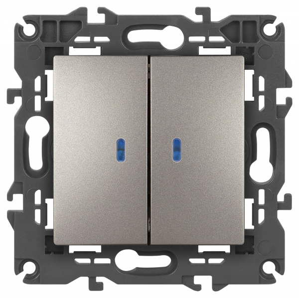 Выключатель ЭРА Elegance 14-1105-16 двойной с подсветкой, 10АХ-250В, титан