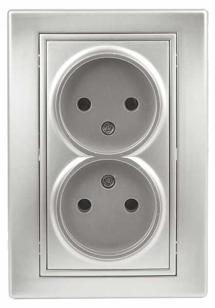 Розетка без заземления двойная 2х2P, 16А-250В, IP20, СУ, алюминий 1-204-03 Intro Plano