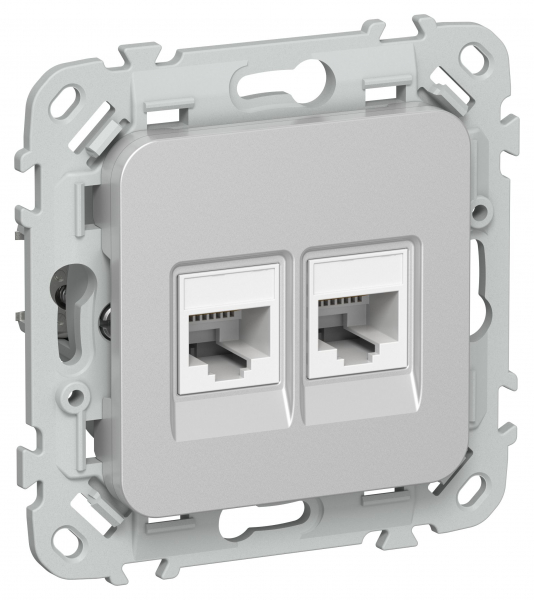 Розетка/коробка коммуникационная крепление в распор и на шурупах 2x rj45 8(8) 5e алюминий IEK