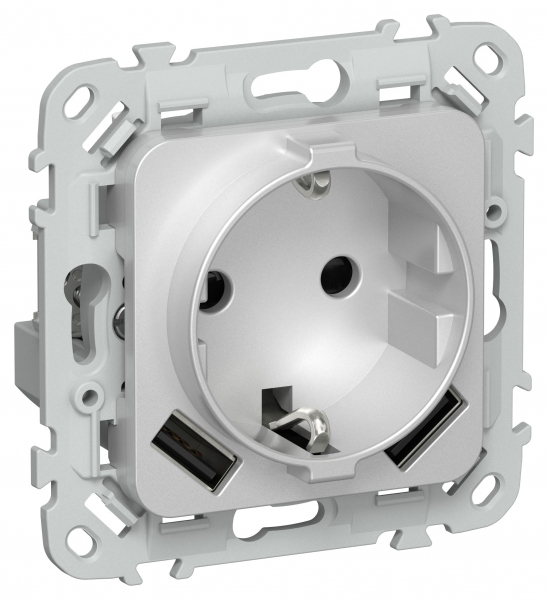 FLITE Роз.с з/к/ш 16А USB AA 3,1А б/к РСЮша11-1-ФлА ал. IEK