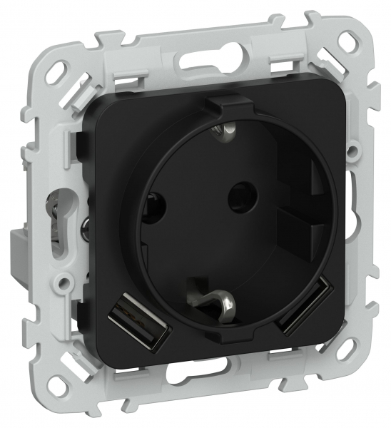 FLITE Роз.с з/к/ш 16А USB AA 3,1А б/к РСЮша11-1-ФлЧ чер. IEK