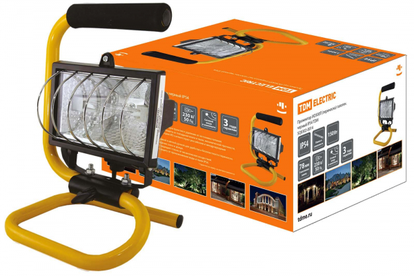 Прожектор галогенный 500W 220V IP54 черный переноска TDM /8