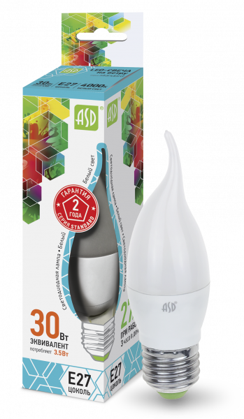 Лампа светодиодная LED-СВЕЧА НА ВЕТРУ-standard 3.5Вт 230В Е27 4000К 320Лм ASD