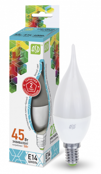 Лампа LED ASD CF 5W 220V 4000К E14 Standart 10/50