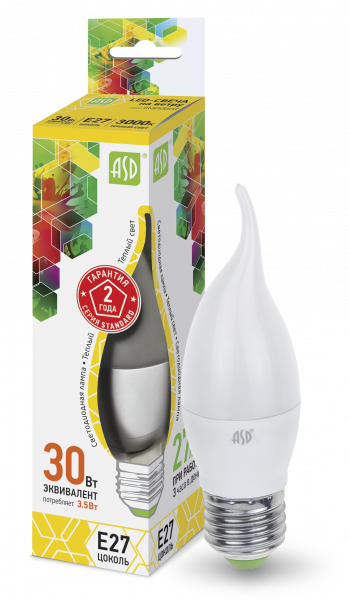 Лампа светодиодная LED-СВЕЧА НА ВЕТРУ-standard 3.5Вт 230В Е27 3000К 320Лм ASD