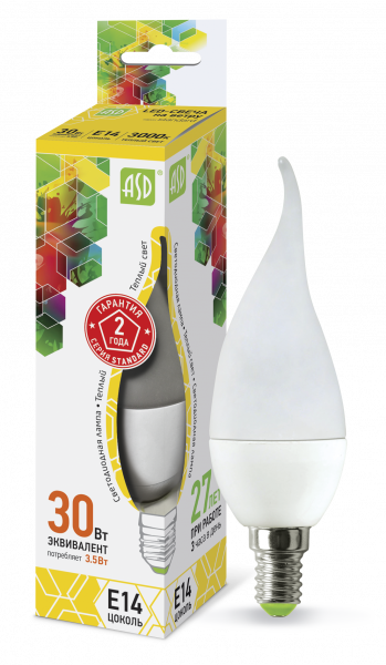 Лампа светодиодная LED-СВЕЧА НА ВЕТРУ-standard 3.5Вт 230В Е14 3000К 320Лм ASD