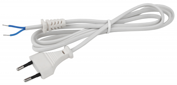 Шнур сетевой с вилкой 2м ПВС 2x0,75мм2 белый UX-2x0,75-2m-W ЭРА 1/50