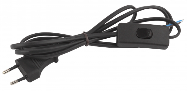 Шнур для бра ЭРА UX-ШВВП-S-1,8m-B с выключателем 1,8 м ШВВП 2x0,5мм2 черный