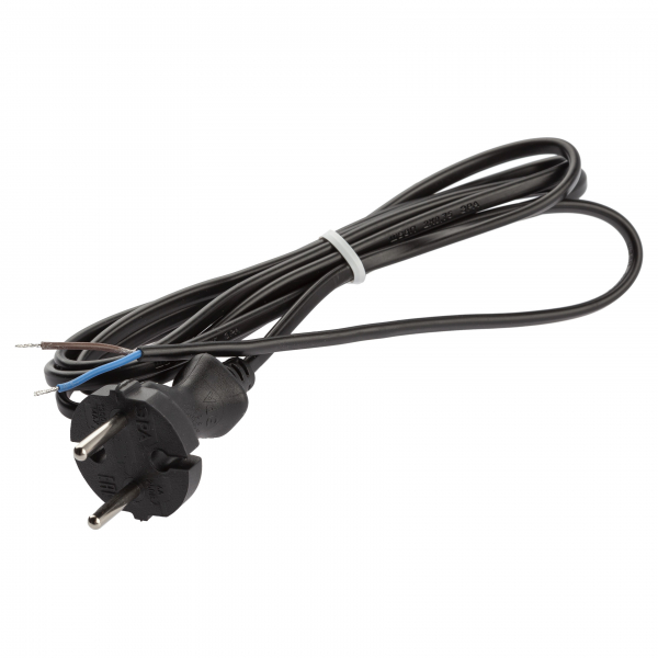 Шнур сетевой с вилкой 2м ПВС 2x0,75мм2 черный UX-2x0,75-2m-B ЭРА 1/50