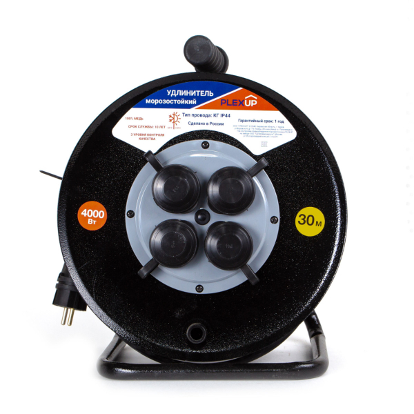 Удлинитель на катушке 4 места листовая сталь КГ 30м 3х2.5мм² IP44 с рамой для переноски PLEXUP