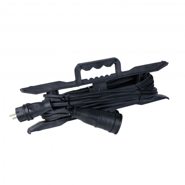 Удлинитель на рамке 1 место 10м 16А пластик черный КГ IP44 с крышками PLEXUP _