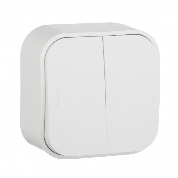 Выключатель 2-клавиш. в сборе 10А 0-250В о/у белый глянц. IP20 Legrand Quteo 20/200