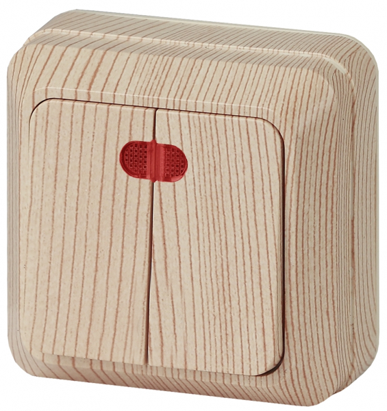 Выключатель 2-клавишный с подсветкой 10А 250В IP20 открытая установка сосна 2-105-11 Intro Quadro