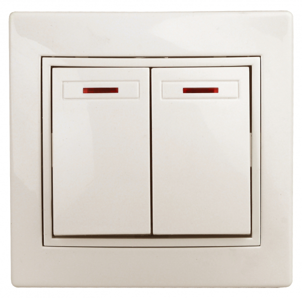 Выключатель 2-клавишный 10А 250В IP20 с подсветкой скрытая установка слоновая кость 1-105-02 Intr