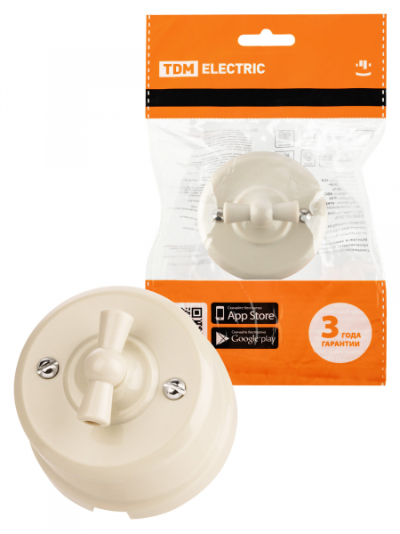 Выключатель поворотный 2-кл. с ручкой (бантик) 10А сл. кость «Виви» TDM