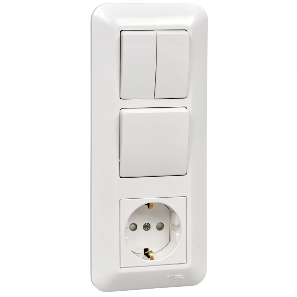 SE Wessen Прима внутр Бел Блок: Розетка с/з + Выключатель 1-кл. + Выключатель 2-кл. /1