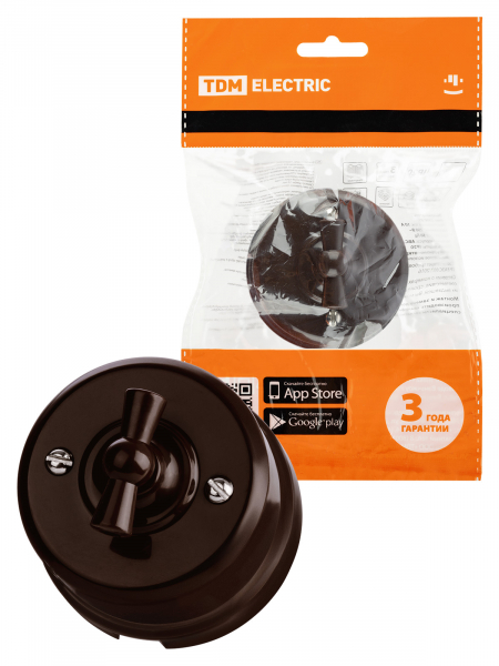 Выключатель поворотный 2-кл. с ручкой (бантик) 10А коричневый «Виви» TDM /6