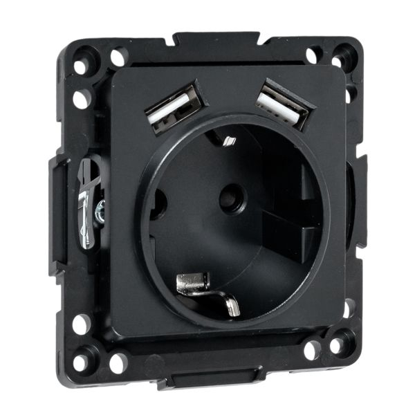 Стокгольм черный Механизм Розетки 1-местной с/з 16А, 2 USB 2A с защ. штор. EKF PROxima 1/7/70