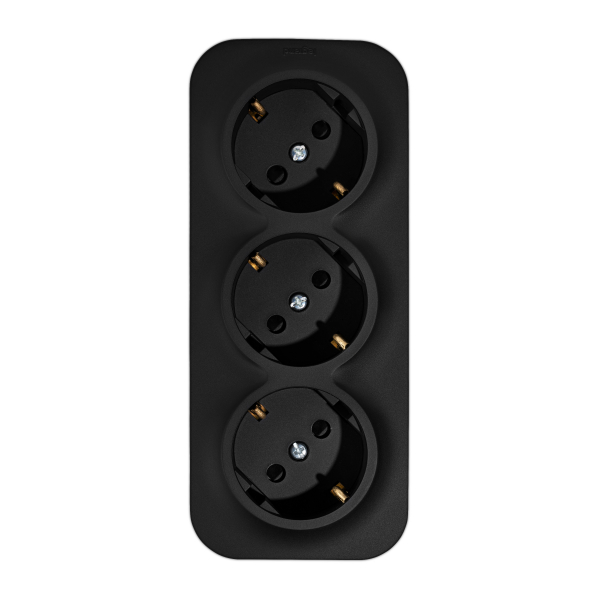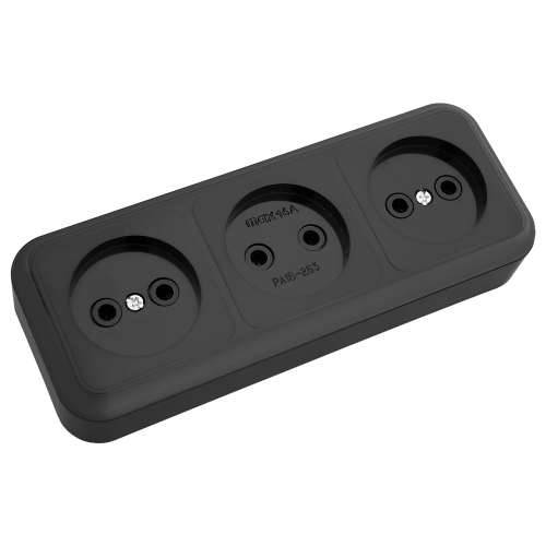 Розетка 3-местная б/з открытая установка черная РА16-263 ПРАЛЕСКА /42