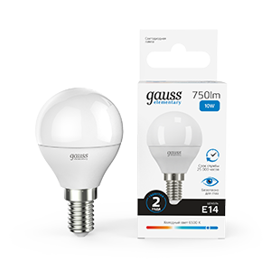 Лампа светодиодная G45 10W 220V 6500K E14 Elementary Gauss 1/10/100
