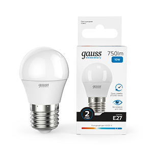 Лампа светодиодная G45 10W 220V 6500K E27 Elementary Gauss 1/10/100