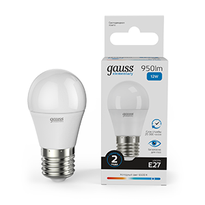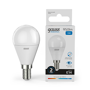 Лампа светодиодная G45 12W 220V 6500K E14 Gauss Elementary 1/10/100