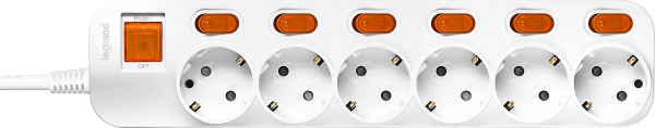 Удлинитель 6 мест 16А пластик белый/серый шнур 3м ПВС IP20 с выключателем Legrand _